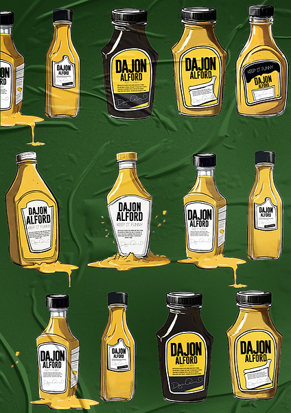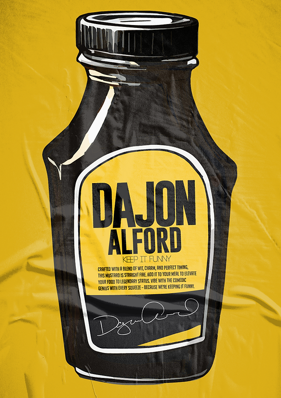 For Spring 2024, savor the flavor of NYC with Dajon Alford's laughter-filled mustard campaign. Featuring one-of-a-kind bottles adorned with Dajon's signature branding, this playful endeavor pays homage to his comedic brilliance. With the tagline "NYC nights just got funnier with Dajon Alford," the campaign infuses humor into every interaction. As an internationally acclaimed comedian from NYC, Dajon has brought his comedic charm to stages worldwide, from Tokyo to London. We've curated the entire brand experience, from identity and illustrations to copywriting, merchandise, billboards, posters, and beyond.